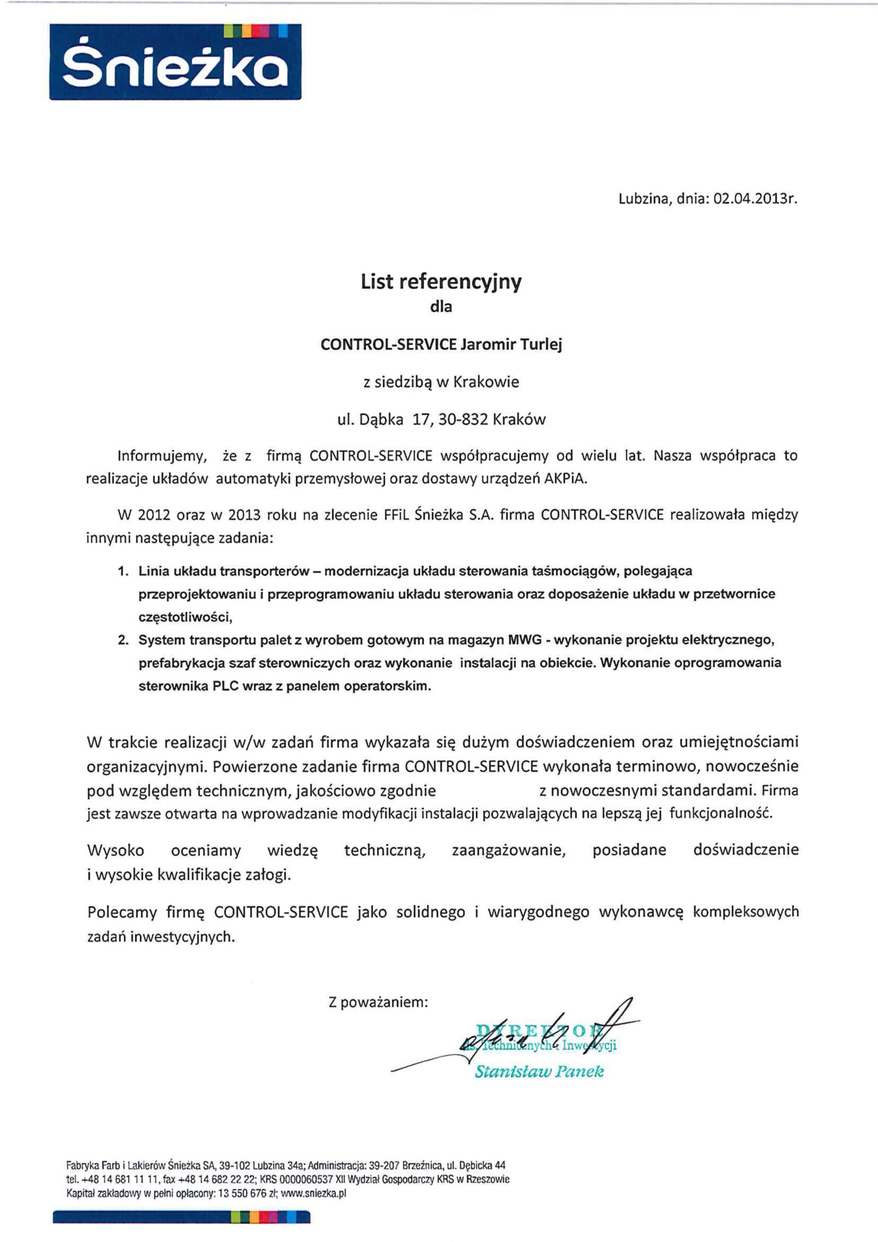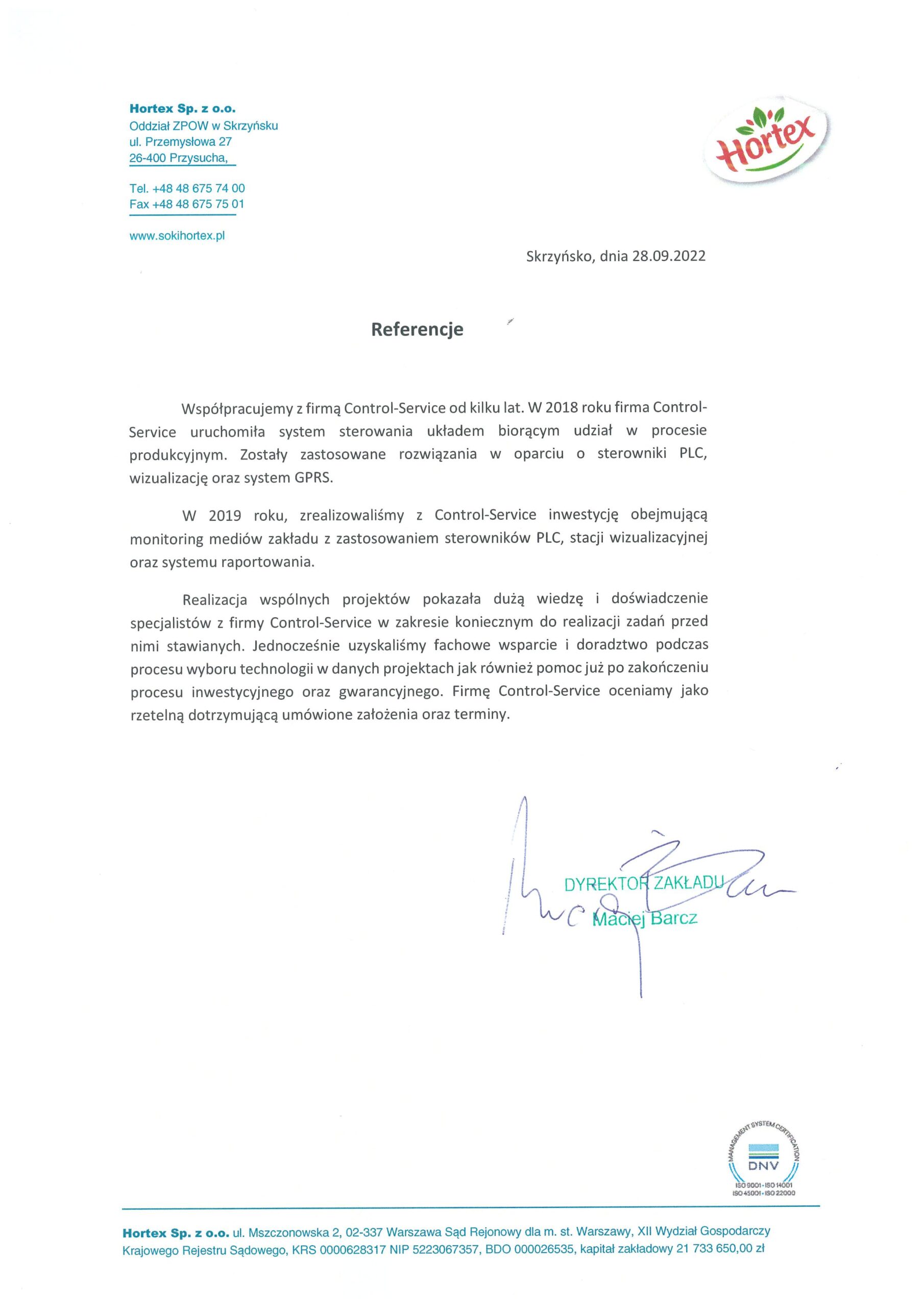Ostatnie lata to dla naszego przedsiębiorstwa czas intensywnej pracy, rozwoju i udoskonalania technologii. Na przestrzeni 5 lat wykonaliśmy ponad 350 systemów sterowania i 1200 przetwornic częstotliwości i softstartów. Liczymy na to, że kolejne lata przyniosą dla nas oraz dla naszych klientów równie dużo dobrego. Wierzymy, że najlepszą ocenę firmie wystawiają współpracownicy. W tym miejscu dzielimy się więc z Państwem opiniami, które wystawili nam dotychczasowi partnerzy.
